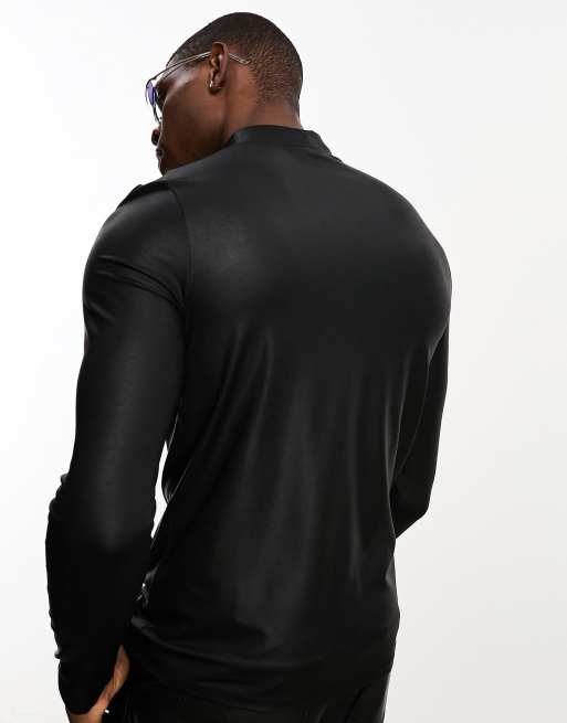 ASOS DESIGN skinny long sleeve turtle neck t shirt in textured faux leather black Very well made.