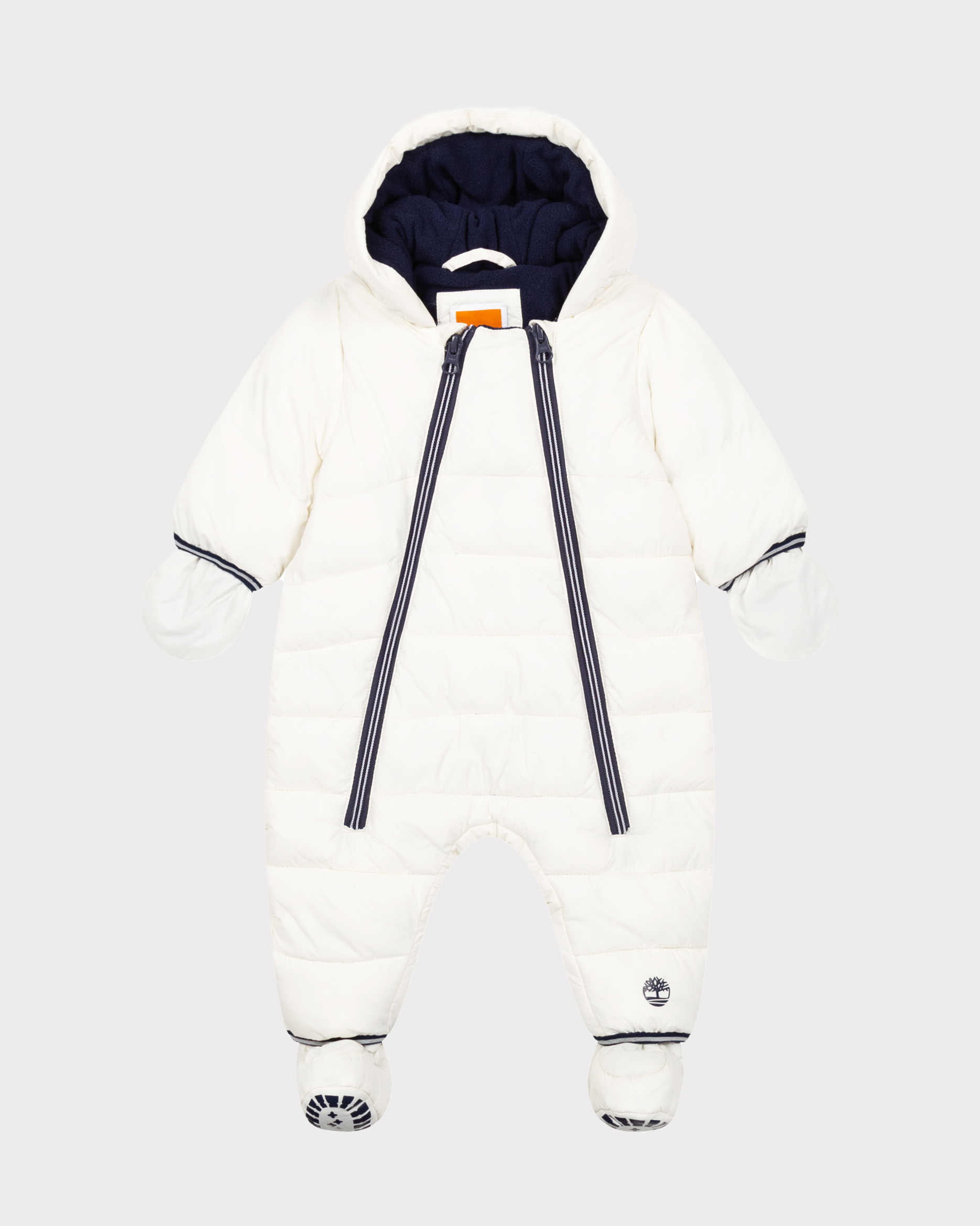 Tuta bianca in nylon imbottita con cappuccio guanti e piedini 6 18 Very well made.