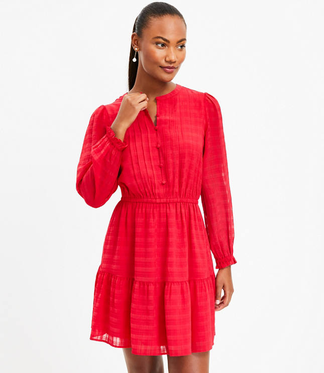 Petite Plaid Pintucked Tiered Flare Dress Very well made.