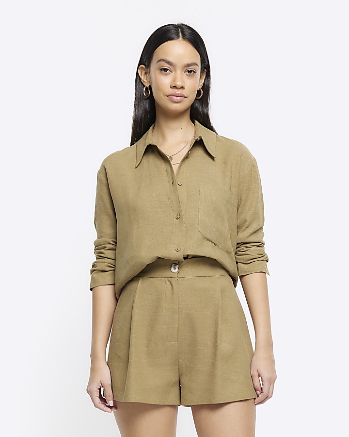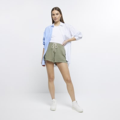 Khaki linen blend high waisted shorts River Island Very well made.