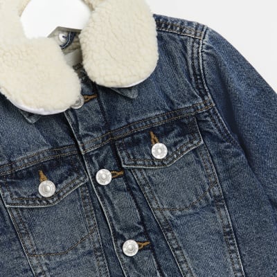 Mini Boys Blue Denim Borg Collar Jacket River Island Very well made.