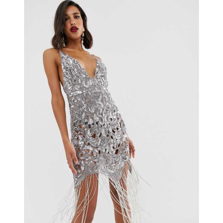 Miniabito Da Sera Da Donna Con Frange E Paillettes Vestito Very well made.