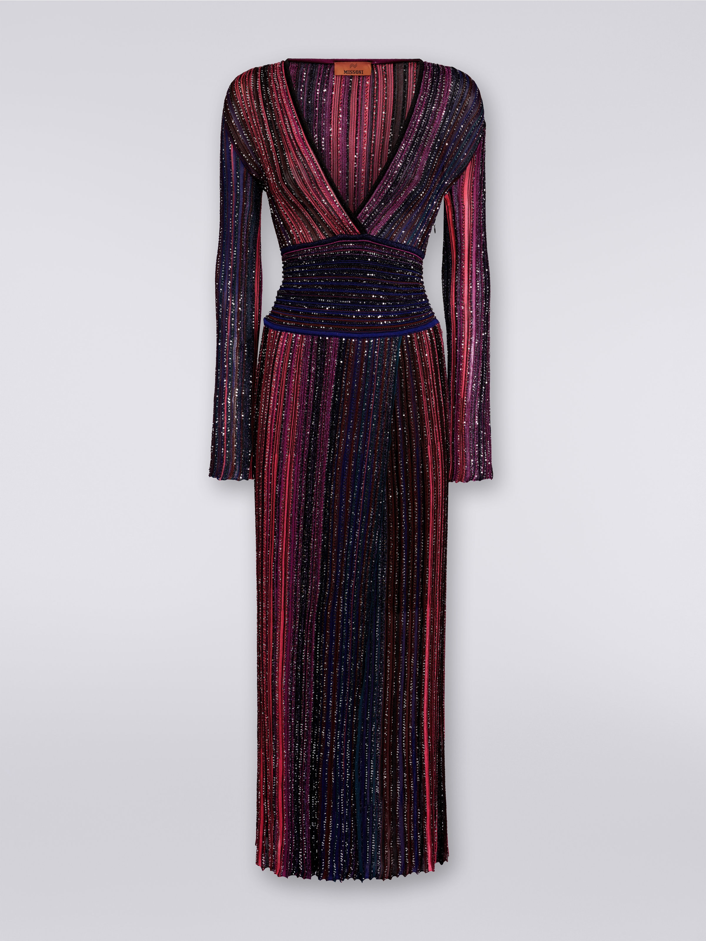 Abito lungo in viscosa con paillettes e scollatura a V Multicolore Very well made.
