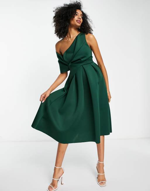 ASOS DESIGN Schulterfreies Midi Ballkleid in tannengr ner Very well made.