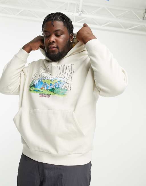 ASOS DESIGN oversized hoodie in beige with watercolour mountain Very well made.