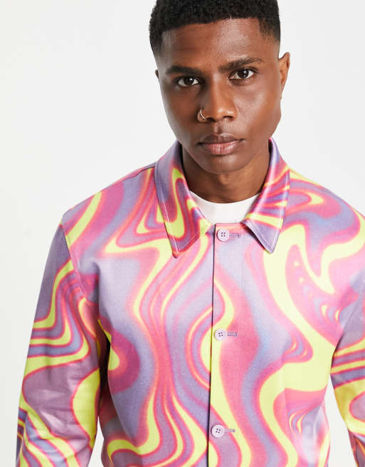 ASOS DESIGN Giacca elegante in raso blu e giallo con stampa Very well made.