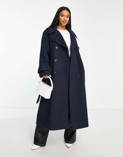 ASOS DESIGN Petite Trench oversize elegante in tessuto spazzolato misto lana blu navy Very well made.