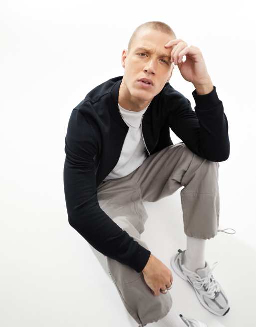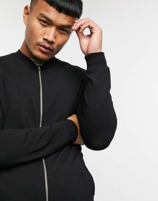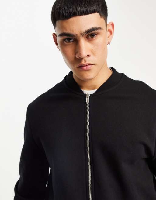 ASOS DESIGN jersey bomber jacket in black ASOS Very well made.