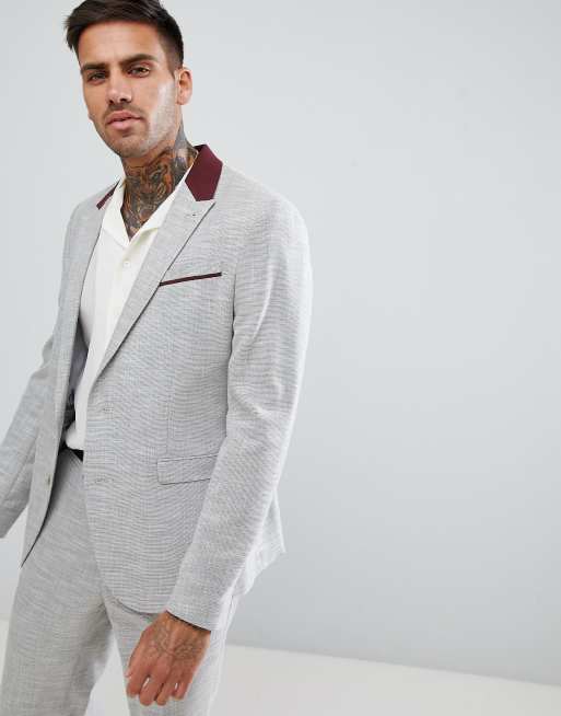 ASOS DESIGN skinny suit jacket in light grey texture with floral Very well made.