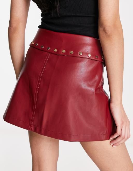 ASOS DESIGN faux leather mini skirt with stud details in red ASOS Very well made.