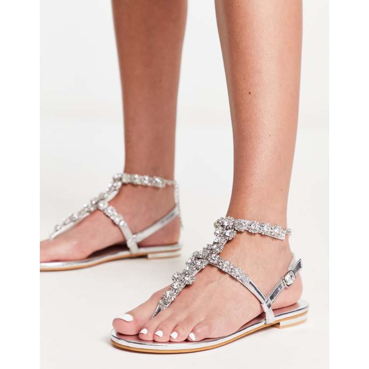 ASOS Faraway Embellished T bar Flat Sandals in Metallic Lyst Very well made.