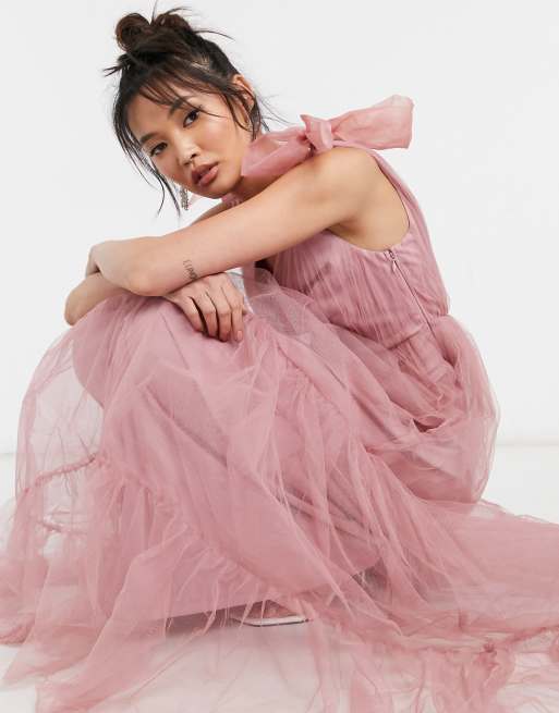 ASOS DESIGN Vestito lungo rosa in tulle con fiocco ASOS Very well made.