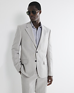 Stone slim fit linen blend suit jacket River Island Very well made.