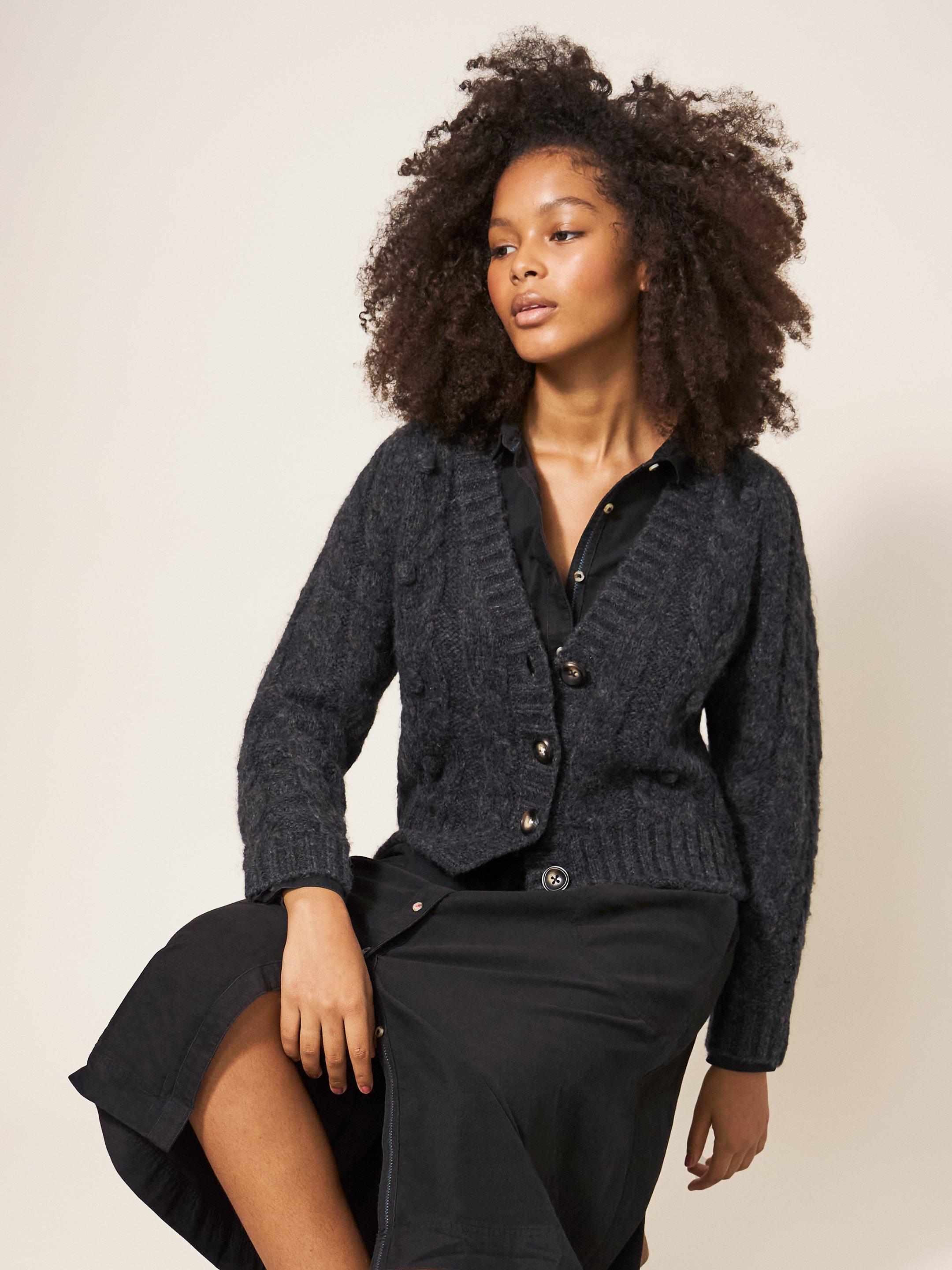 CABLE CARDI in DK GREY White Stuff Very well made.