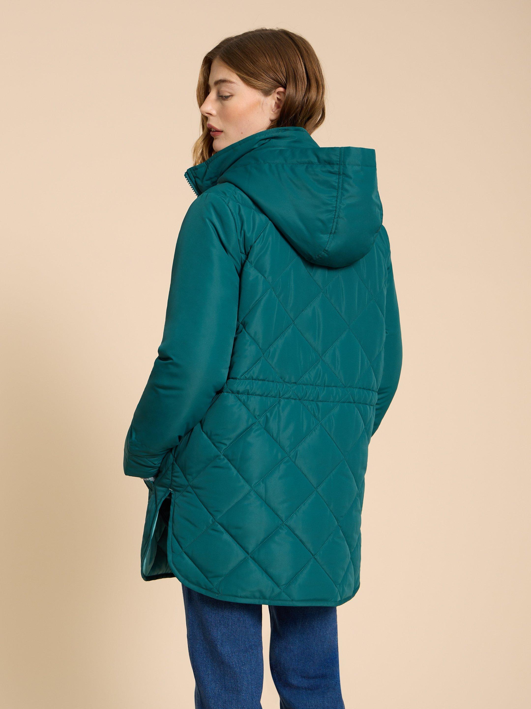 Emilia Quilted Long Sleeve Coat in DK TEAL White Stuff Very well made.