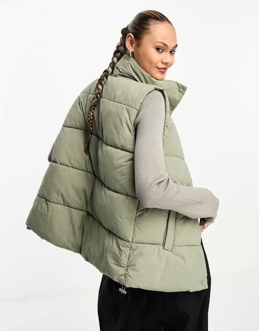 Cotton On button up Mother puffer vest jacket in khaki Very well made.