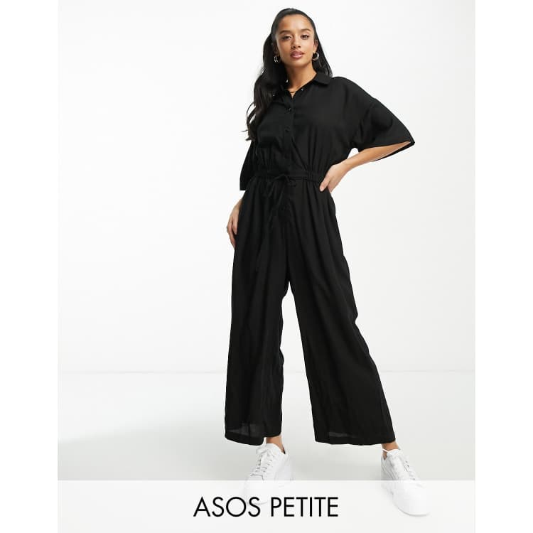 ASOS DESIGN Petite oversized tie waist shirt jumpsuit in black ASOS Very well made.