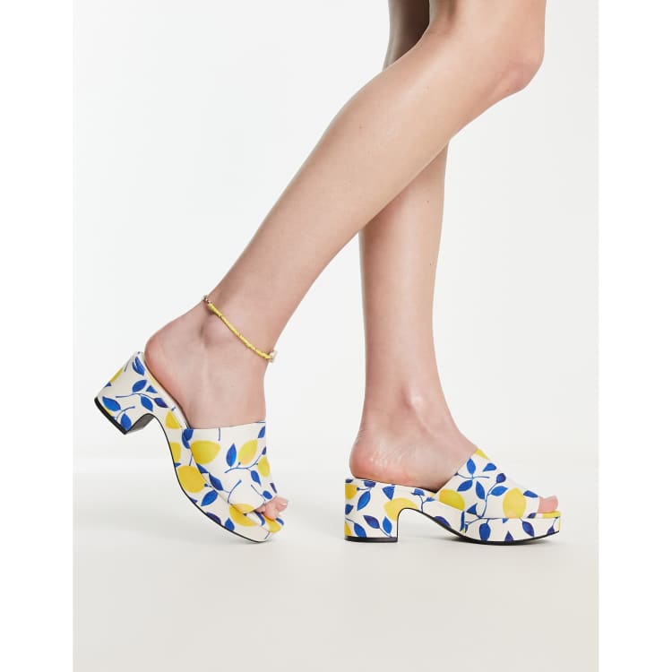 Monki lemon print mid chunky heeled platform mules in yellow ASOS Very well made.