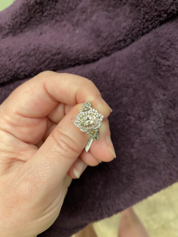 Previously Owned Enchanted Disney Aurora 7 8 CT. T.W. Oval Very well made.
