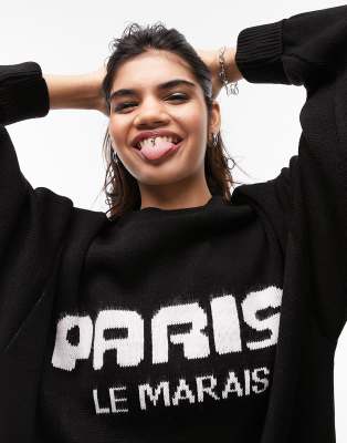 Topshop knitted Paris sweat jumper in monochrome ASOS Very well made.