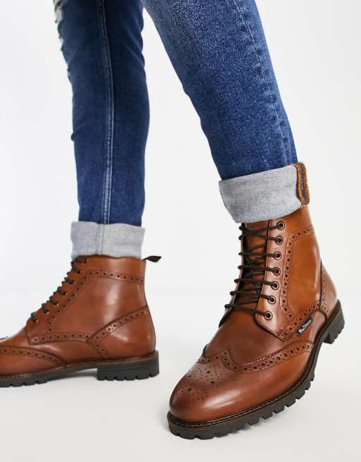 Ben Sherman Wide Fit leather smart brogue boots in tan Very well made.