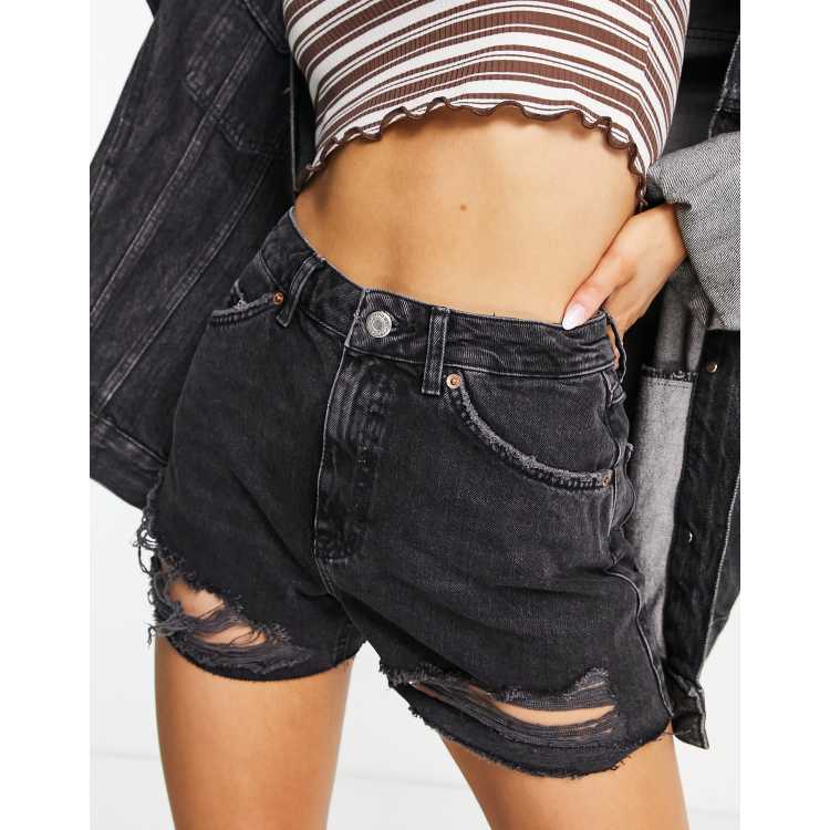 Topshop rip side split mom denim short in washed black Very well made.