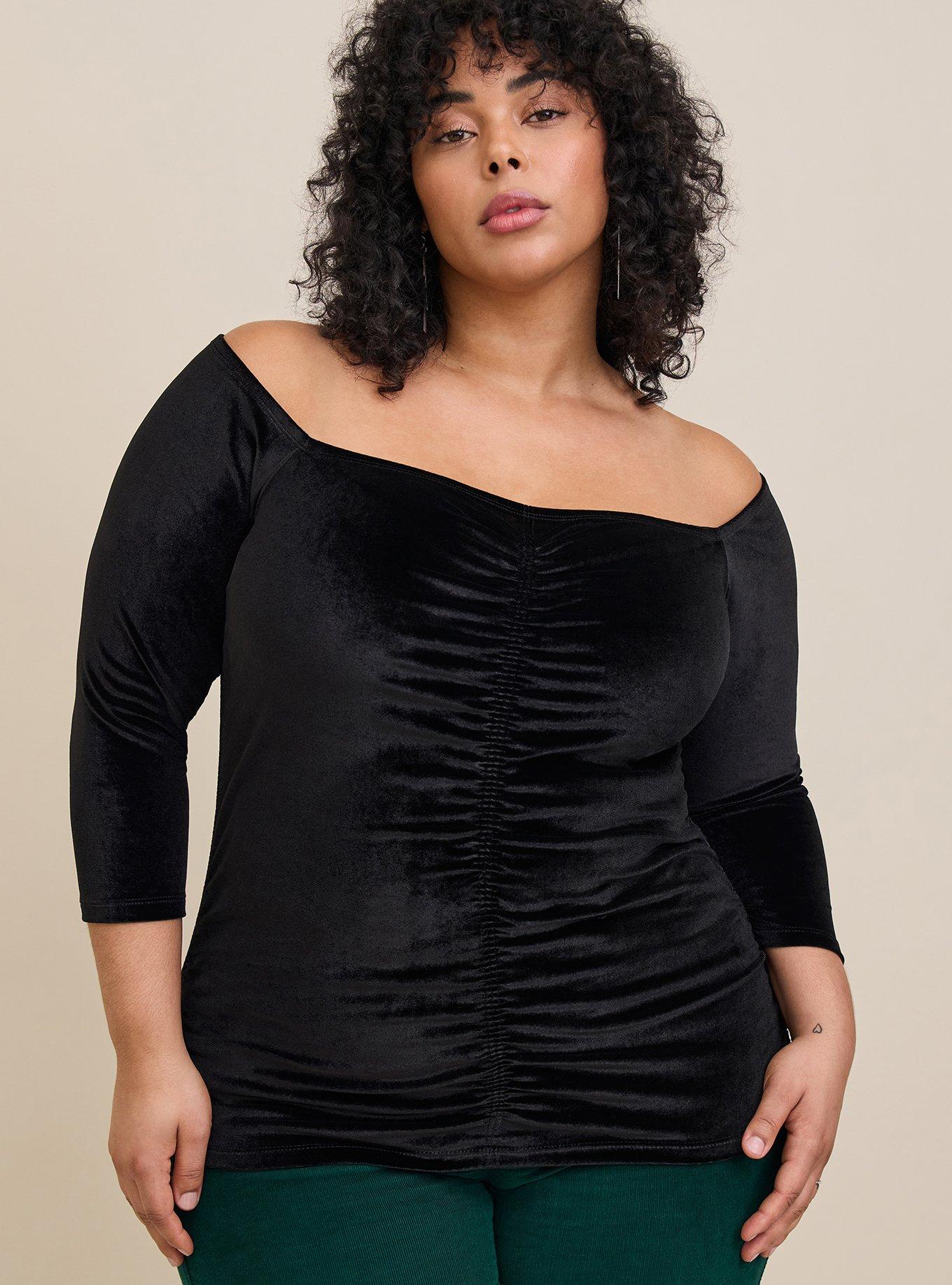 Plus Size Stretch Velvet Shirred Front Off The Shoulder Top Torrid Very well made.