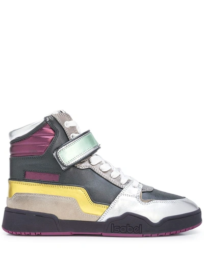 Isabel Marant Bresse Metallic Colorblock High top Sneakers In Gun Very well made.