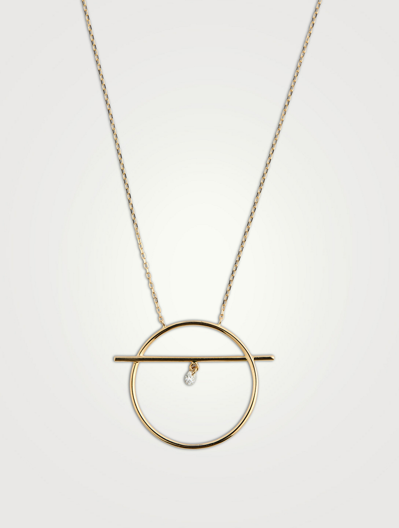 PERS E PARIS Fibule 18K Gold Circle Bar Necklace With Diamond Very well made.