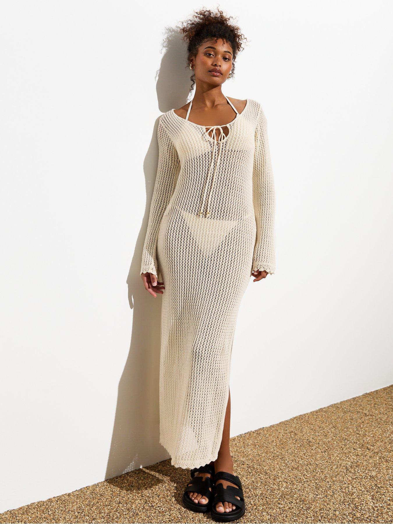 New Look Cream Crochet Knit Long Sleeve Split Hem Maxi Dress Very well made.
