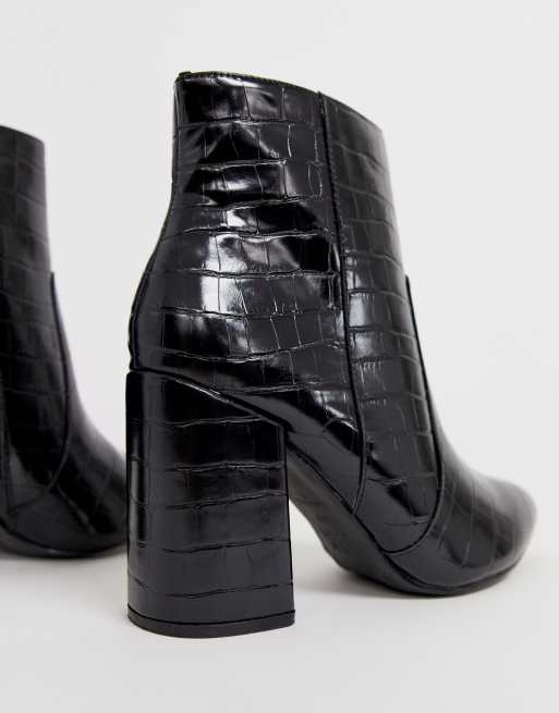 Public Desire Black Faux Croc Pointed Block Heel Boots New Look Very well made.