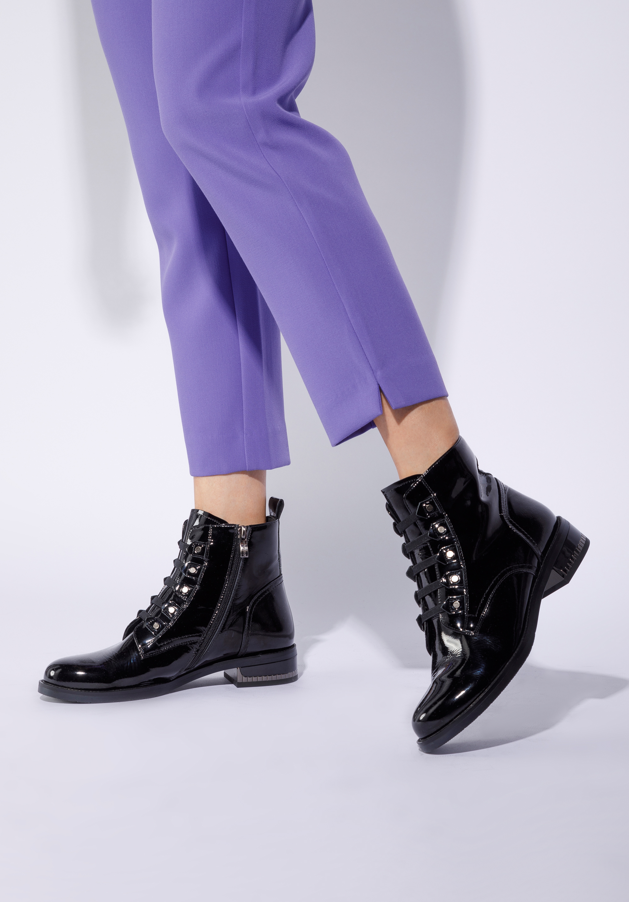 Womens Grace Biker Boots Lace Up Chunky Heel Ankle Boots Patent Very well made.