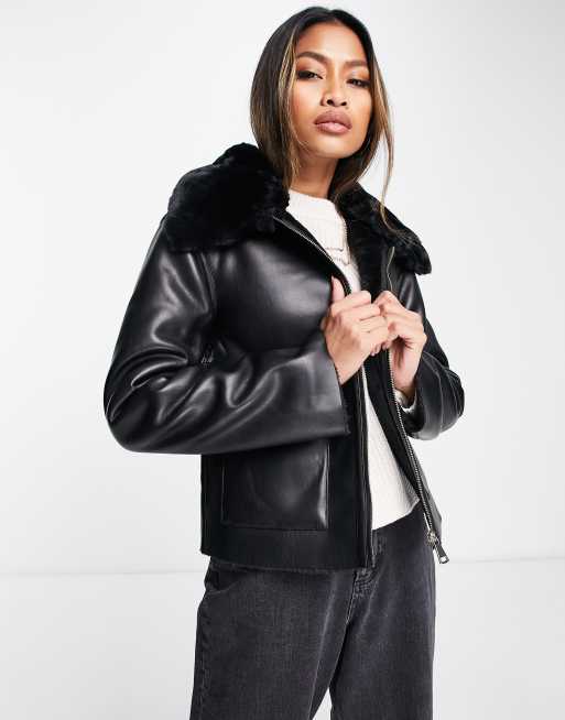 River Island boxy shearling jacket in black Very well made.