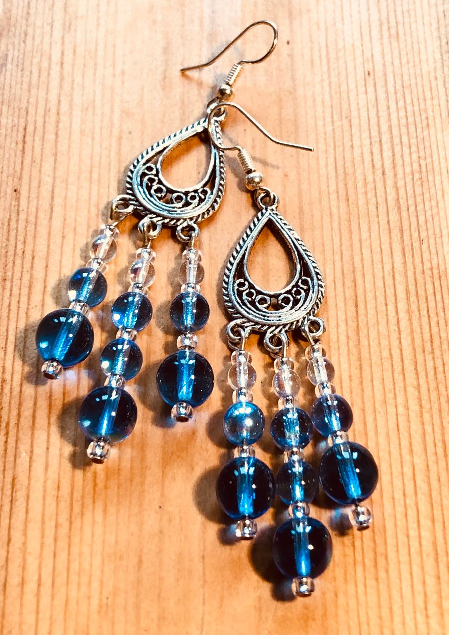 Blue glass chandelier earrings Very well made.
