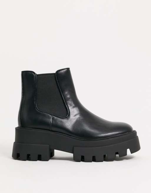 Pull Bear short platform chelsea boot with cleated sole in black Very well made.