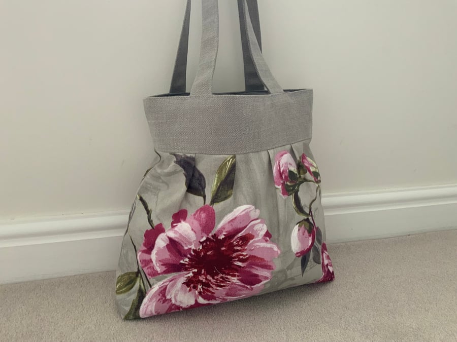 Beautiful Pleated Fabric Tote Bag Floral Magnolia Handbag Day Bag Very well made.