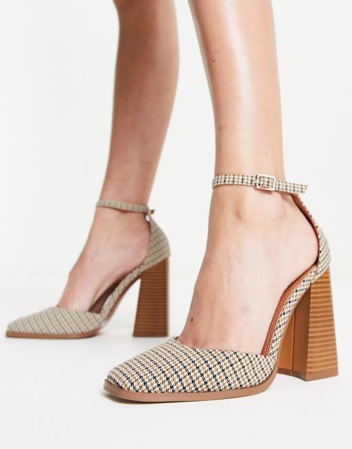 ASOS DESIGN Pyra square toe block heeled shoes in check Very well made.