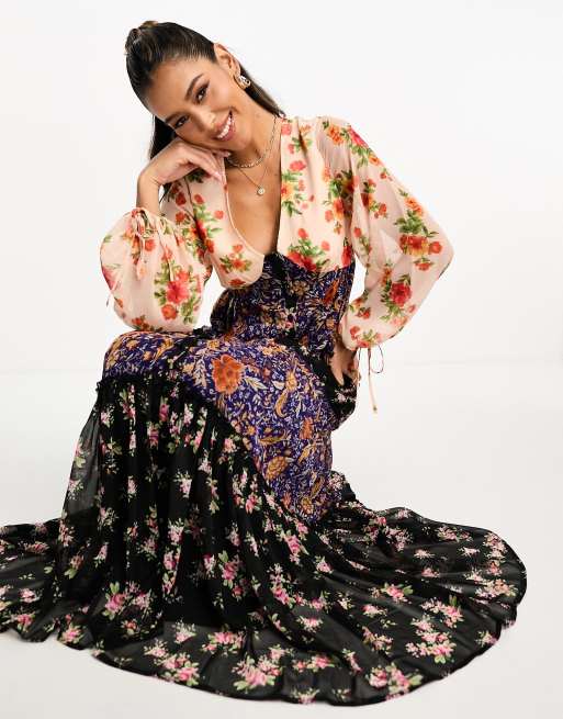 ASOS DESIGN chiffon button through smock maxi dress in mixed print Very well made.