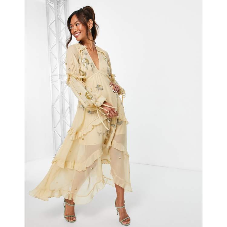 ASOS DESIGN a line midi dress with cluster embellishment in gold Very well made.