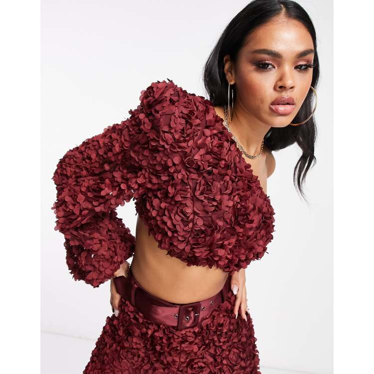 ASOS LUXE co ord 3D lace one shoulder crop top in wine ASOS Very well made.