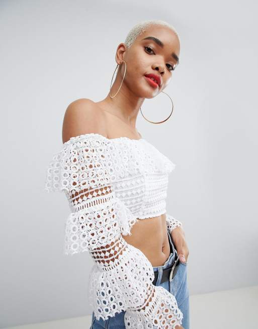 PrettyLittleThing Lace Tiered Sleeve Crop Top Very well made.