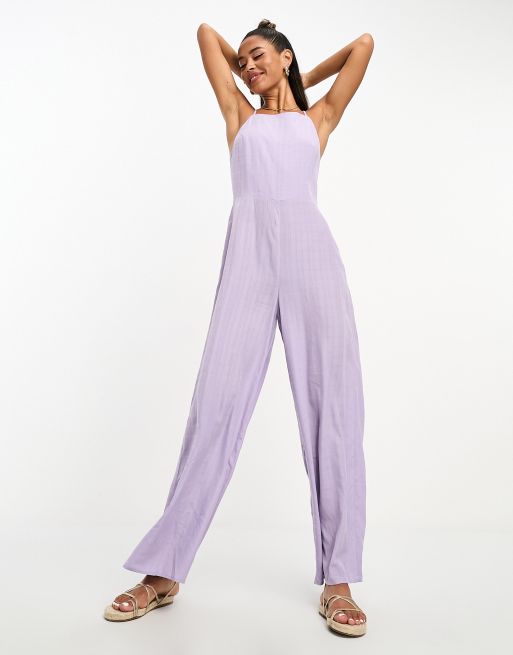 Lola May square neck wide leg jumpsuit with tie back in lilac Very well made.