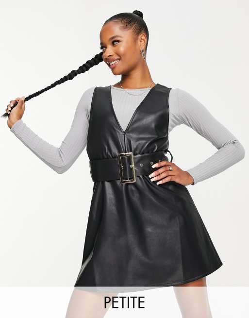 Miss Selfridge Petite belted faux leather pinny dress in black Very well made.