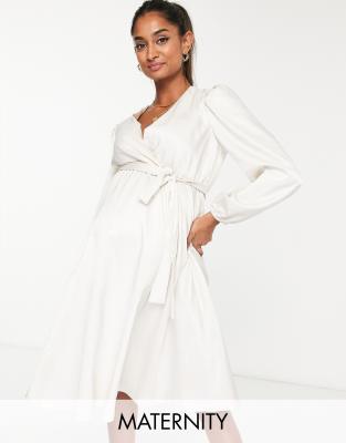 Queen Bee Maternity wrap front mini satin dress in stone ASOS Very well made.