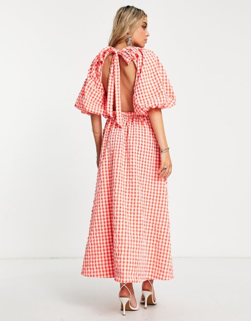 ASOS DESIGN open back puff sleeve maxi dress in textured red gingham Very well made.