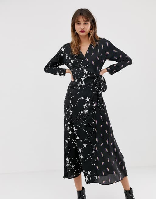 ASOS DESIGN wrap maxi dress in star and lightning bolt print Very well made.