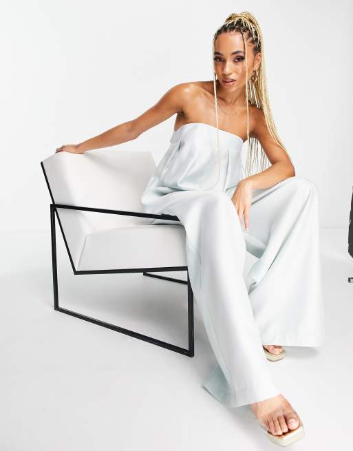 ASOS DESIGN strapless pleat jumpsuit with tie back in mint Very well made.