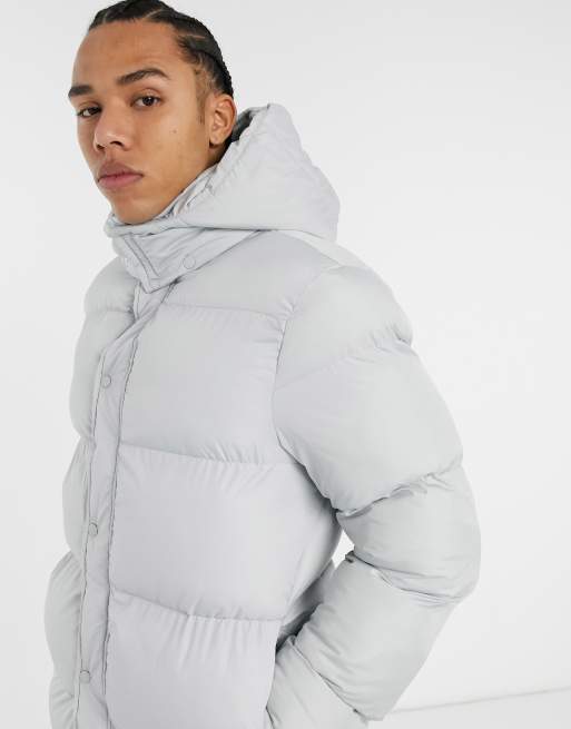 ASOS DESIGN recycled puffer jacket in grey with funnel neck Very well made.
