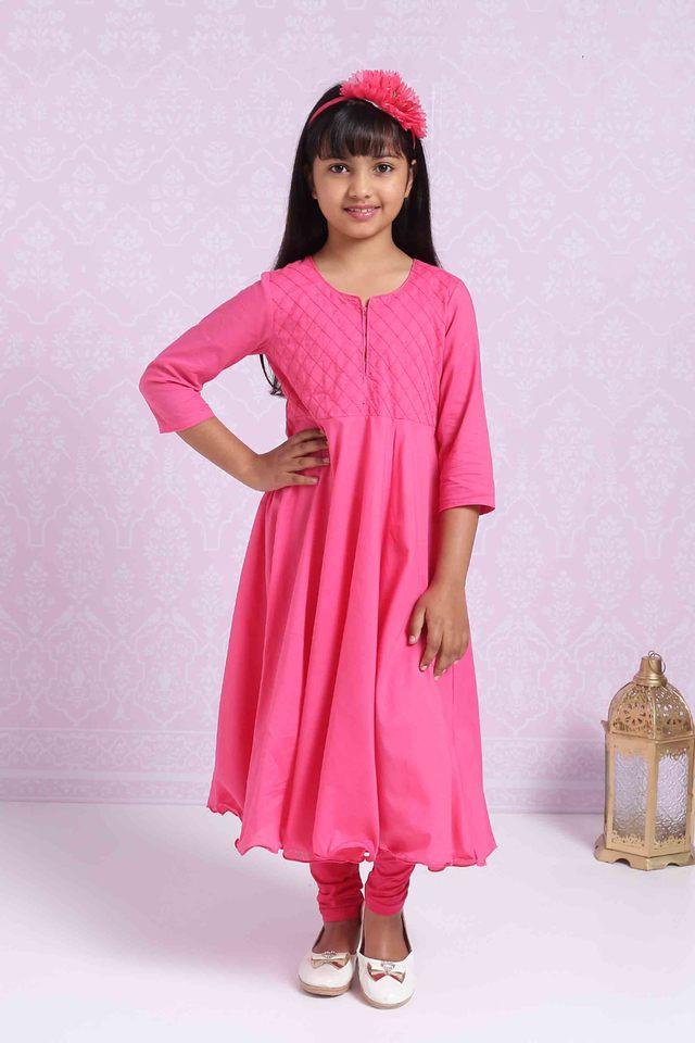 Buy BIBA GIRLS Pink Solid Cotton Round Neck Anarkali Suit Very well made.