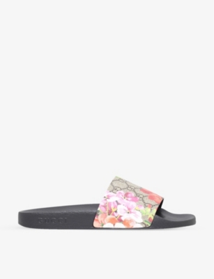 GUCCI Pursuit floral print leather sliders Selfridges Very well made.